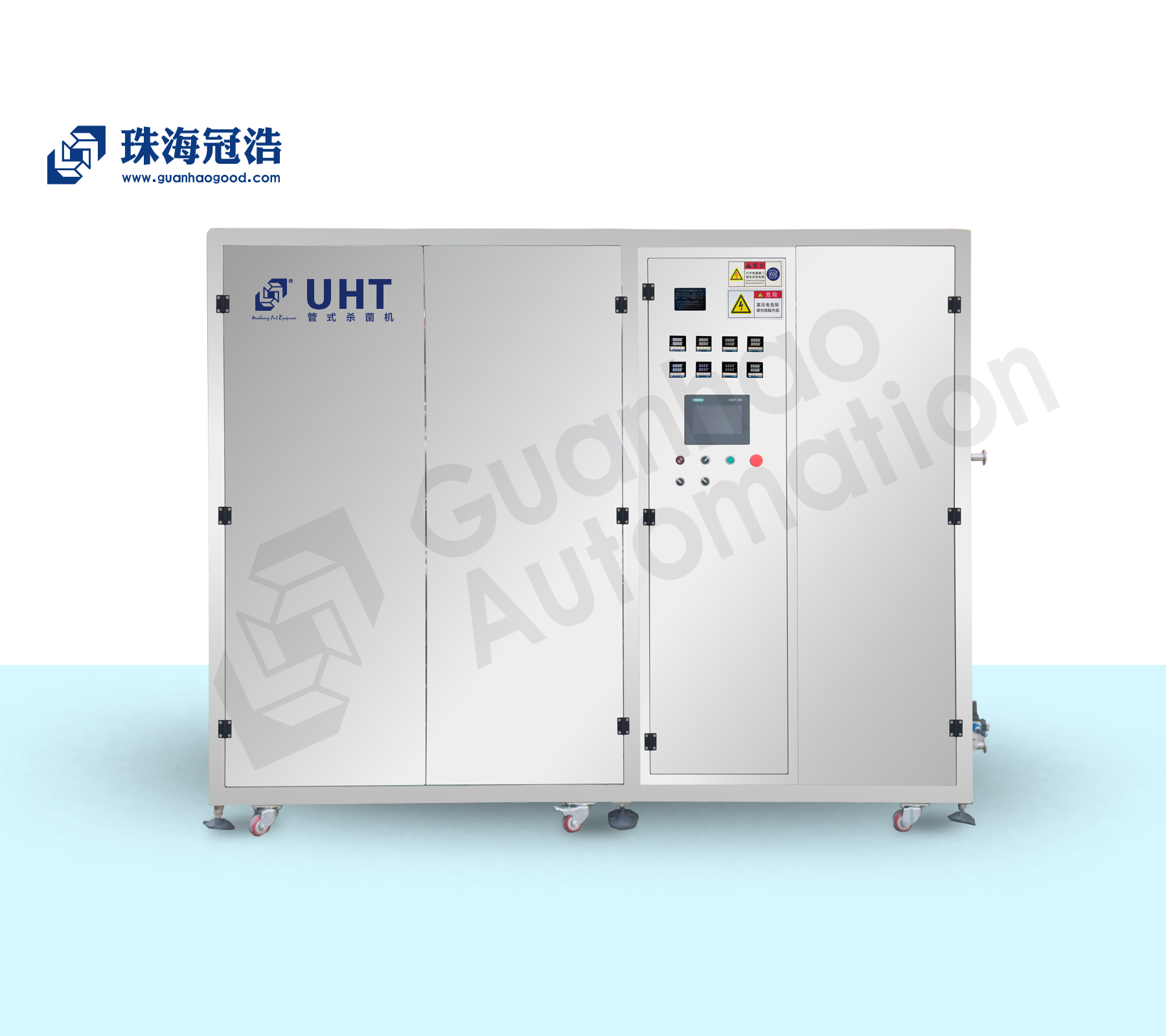 超高温瞬时杀菌(Ultra - high temperature instantaneous sterilization,简称UHT)是把加热温度设为135-150℃、加热时间为2-8s、加热后产品达到商业无菌要求的杀菌过程。其基本原理包括微生物热致死原理和如何最大限度地保持食品的原有风味及品质原理。因为微生物对高温的敏感性远远大于多数食品成分对高温的敏感性,故超高温短时杀菌,能在很短时间内有效地杀死微生物,并较好地保持食品应有的品质。基本介绍:超高温瞬时杀菌( UHT) 是将产品在封闭的系统中加热到120 ℃以上, 持续几秒钟后迅速冷却至室温的一种杀菌方法。将超高温瞬时杀菌技术和无菌包装技术结合起来, 经过超高温瞬时杀菌后, 在一个无菌的环境中将产品包装起来, 就可有效地控制产品的微生物总量, 极大地延长食品的保质期,并且由于杀菌持续时间很短, 可最大限度的保存产品营养和风味 。