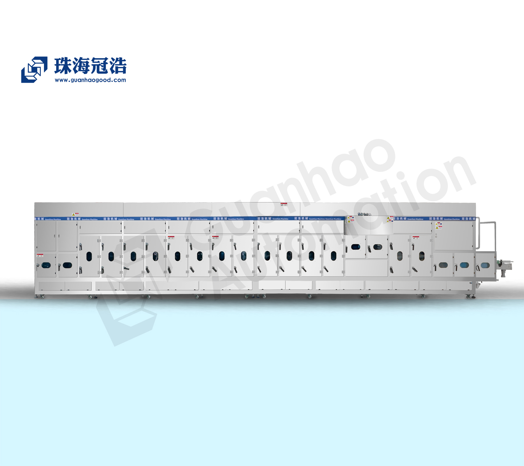 该设备由珠海冠浩机械设备有限公司研发的针对饮料行业无菌灌装的专业设备,由自动入瓶、送瓶、送盖、